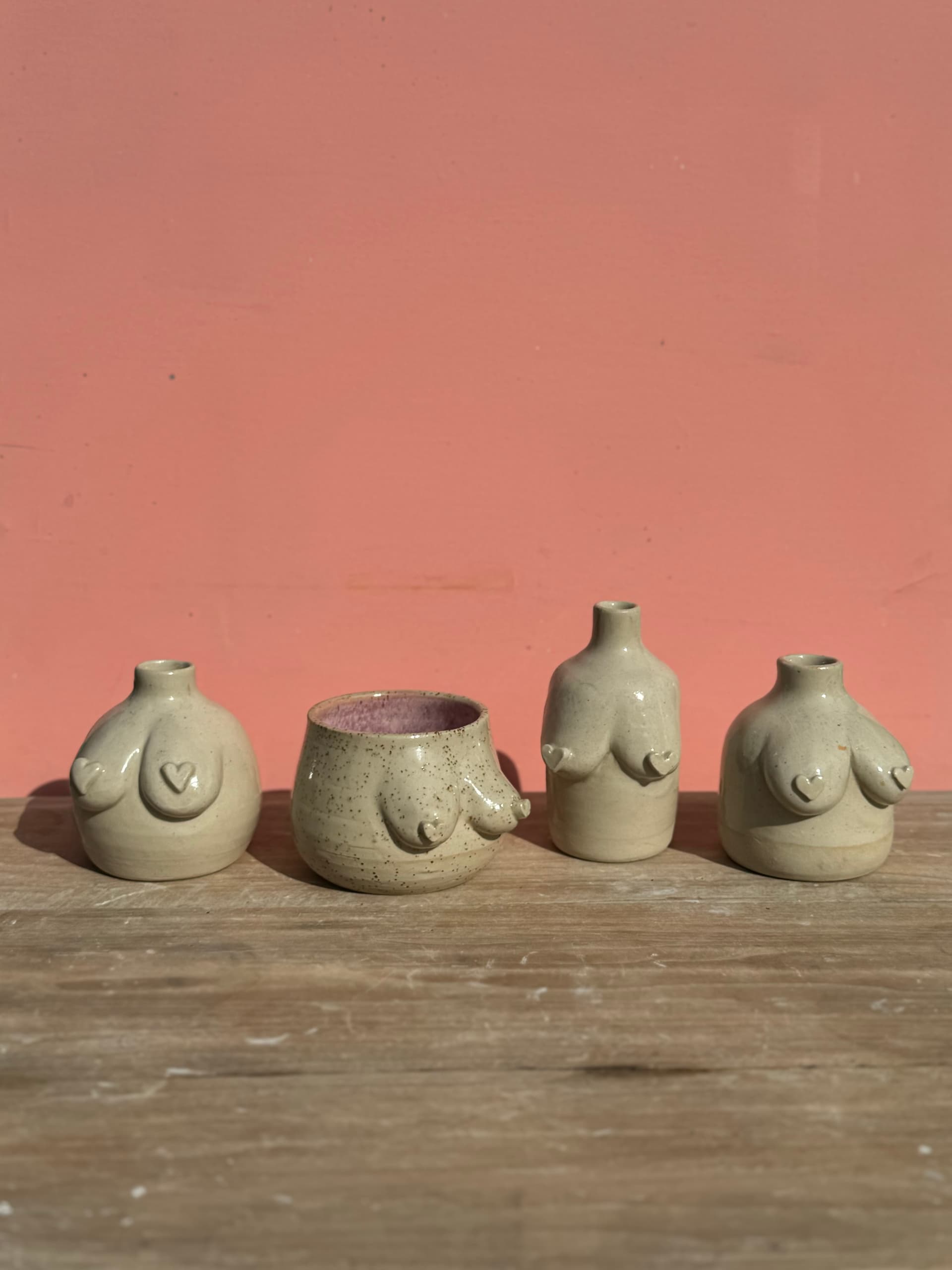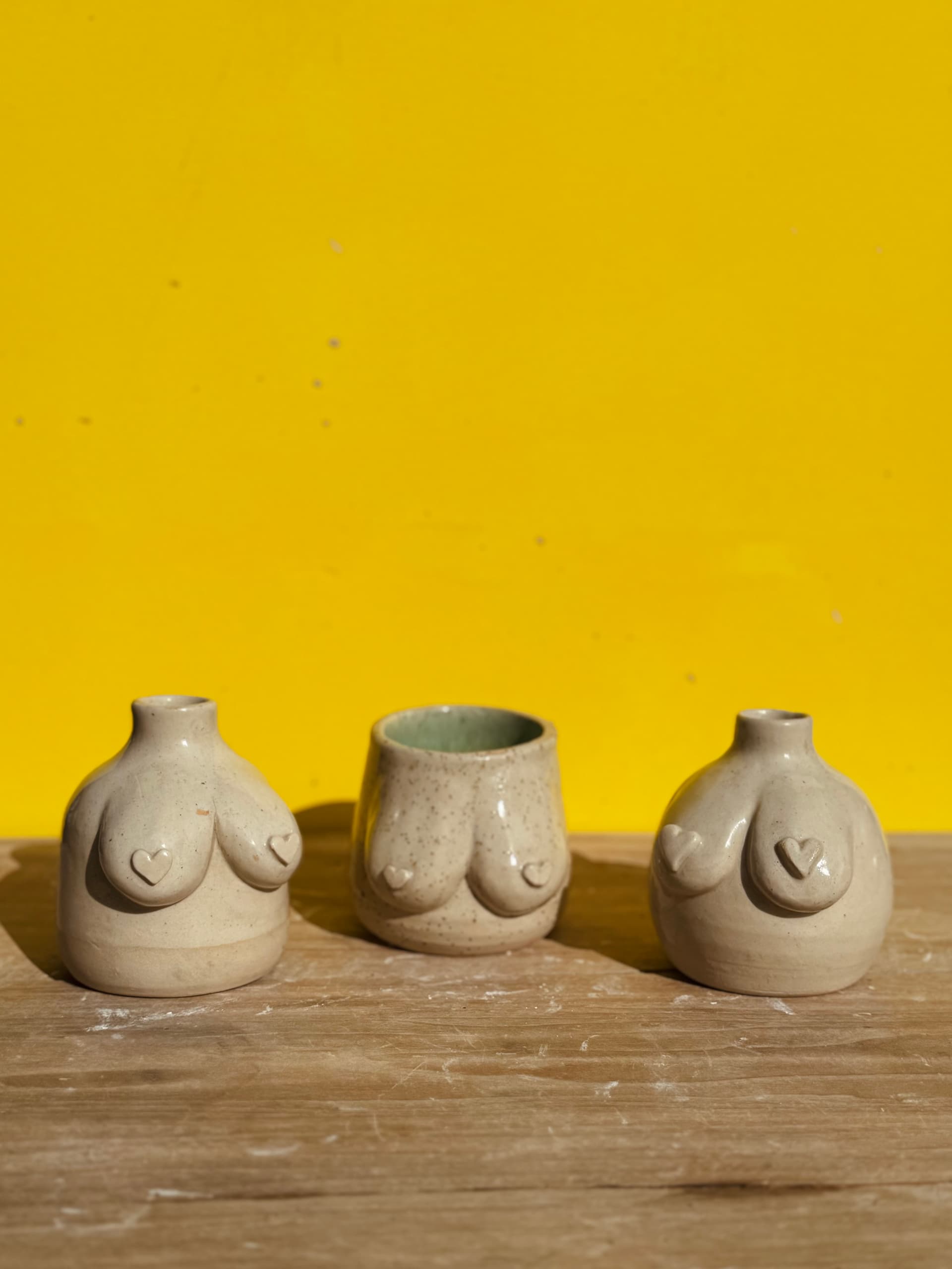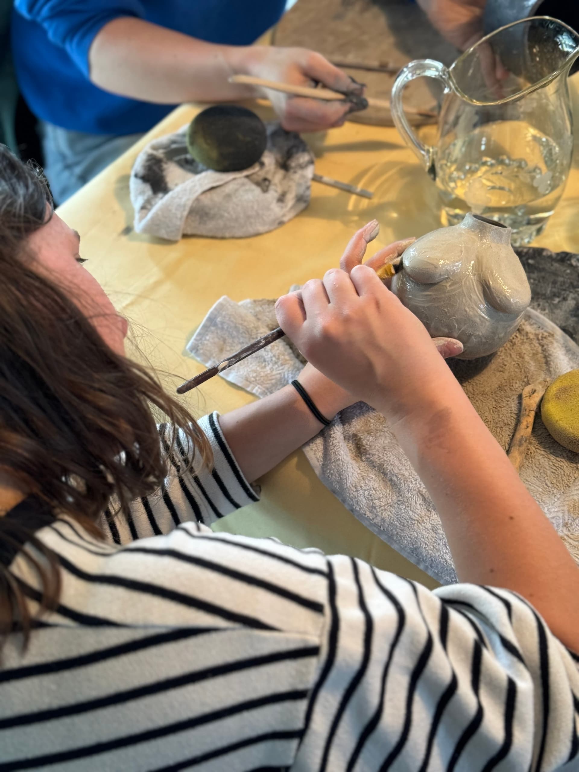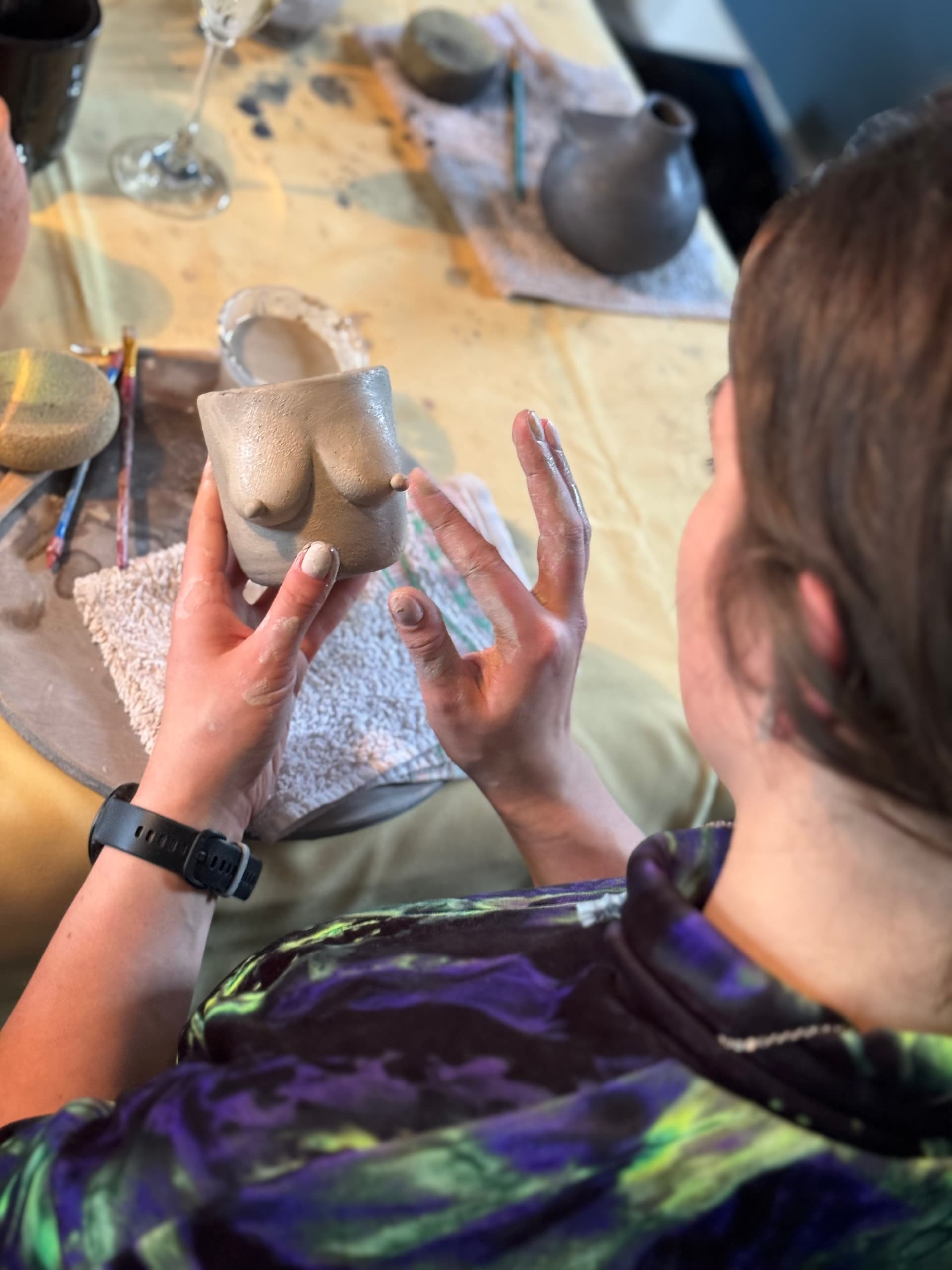 Om alles vlot te laten verlopen, bereiden we de tassen alvast voor. Voor de workshop draaien en modelleren we de basis in verschillende leuke vormen, zodat iedereen kan kiezen wat het beste past bij hun persoonlijke stijl. Tijdens de workshop monteren jullie zelf de borstjes op de tas en kiezen jullie een glazuur waarmee we de tas na afloop zullen afwerken.