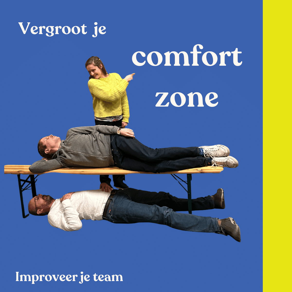 Met eenvoudige en creatieve technieken prikkelen we uiteenlopende vaardigheden zoals verbeelding, co-creatie, aanpassingsvermogen en positief denken in alternatieven. Hierdoor kan je sneller en flexibeler omgaan met wat er rondom je gebeurt. Het is super plezant om te doen met collega’s. Na iedere oefening volgt een korte debrief. Wat vertelt dit over jezelf en je team? Hoe kan je deze nieuwe inzichten gebruiken in je dagdagelijkse werking?