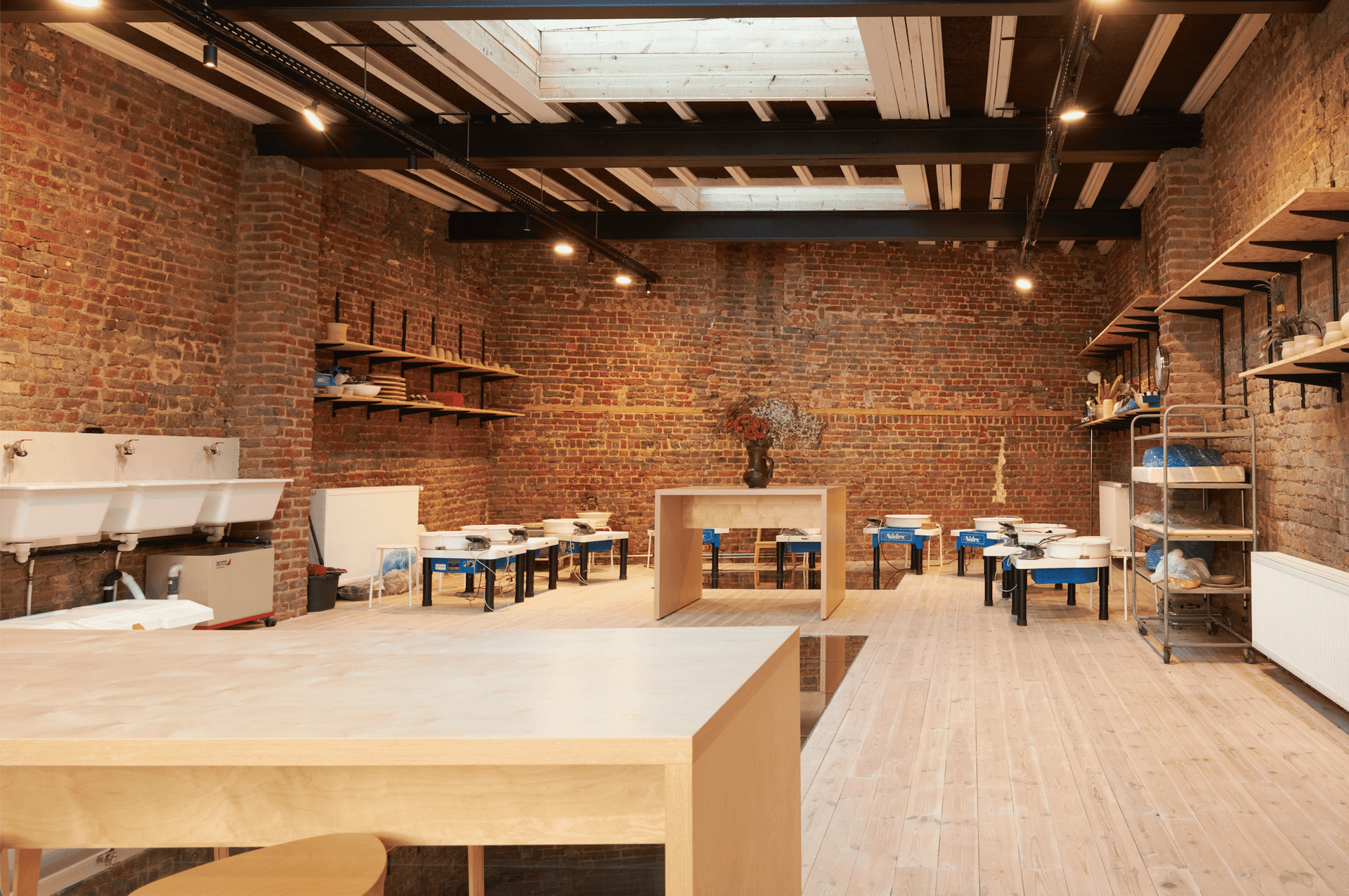 Participants are welcomed by the instructor, who explains the pottery wheel technique for a few minutes. They are then seated in front of their own pottery wheel. The instructor guides them in their movements, and they can attempt to shape several pieces of their choice. The pieces are then fired and glazed by the staff and will be available for pick-up in the following weeks.