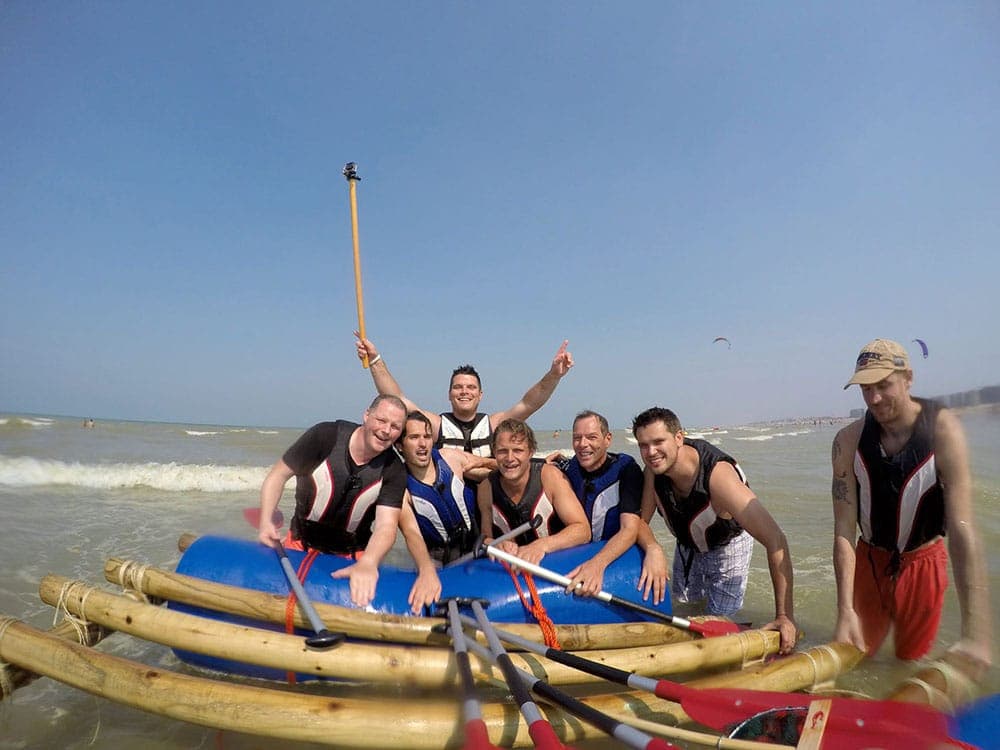 An adventure activity on the coast where working together is key. The most fun part is undoubtedly the moment when your raft is tested on the water. Which raft will get through the surf the fastest? Should the sea be a little calmer on the day of your activity, we will challenge you with lots of agility and cooperation tests. Fun is guaranteed during this challenging activity!