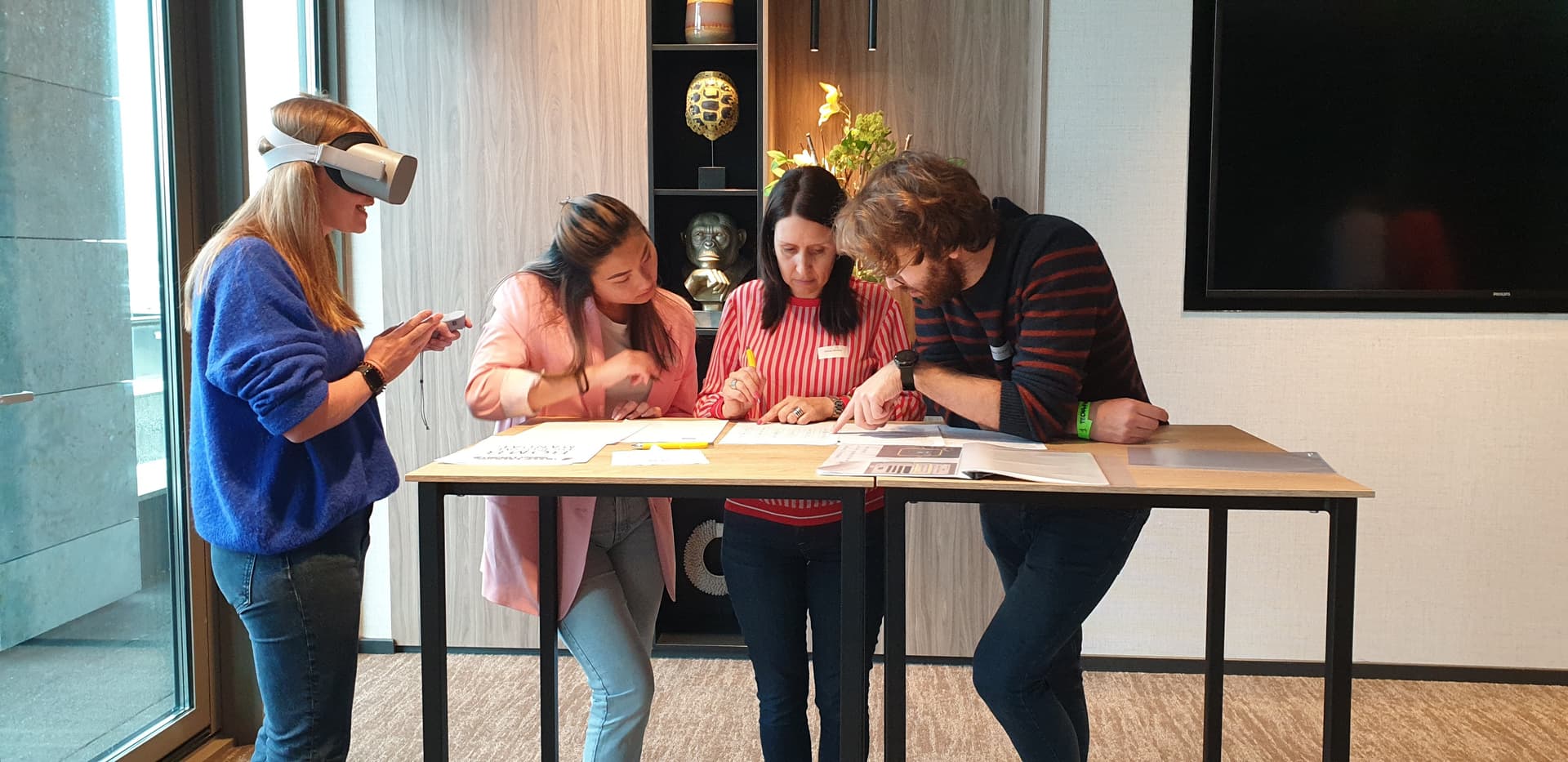 In both cases, small teams take turns wearing the VR headset and solving the VR puzzle with the help of their colleagues, who have the necessary instructions at hand. If there is enough time and space, we are happy to provide the opportunity to completely unwind. Just smash anything that comes your way with a fancy lightsaber, all to a cheerful tune. Bye bye, stress...