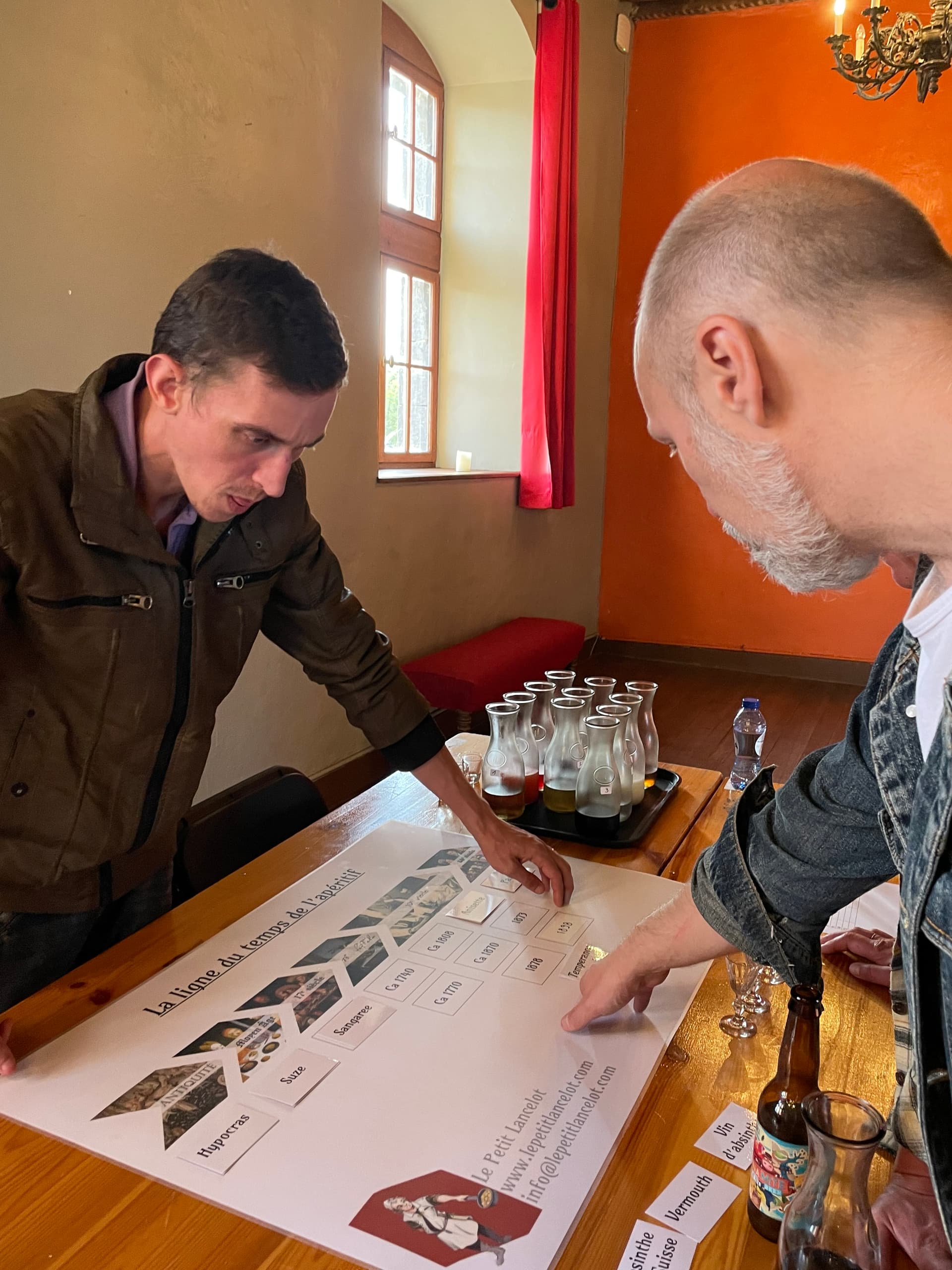 - Déguster, reconnaître et placer sur une ligne du temps douze apéritifs de toutes les époques, de l’Antiquité à nos jours.