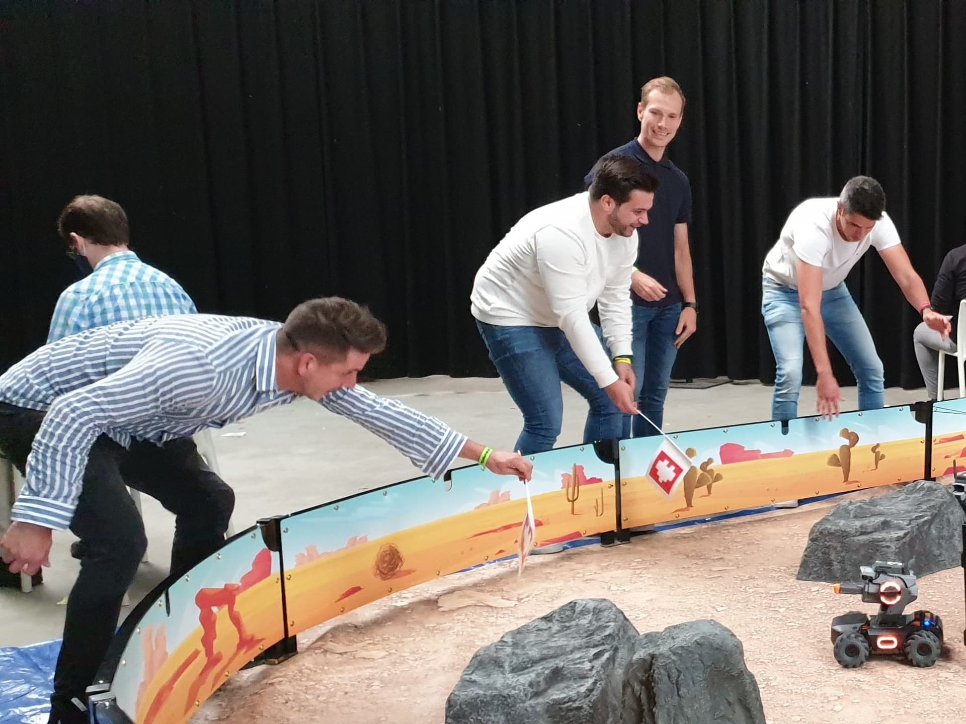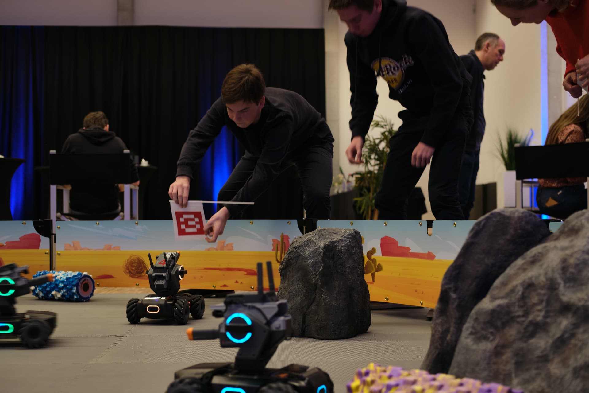 Les robots prennent place dans l'arène de combat. En équipes de 4 à 5 personnes, vous vous préparerez pour diverses missions. Vous découvrirez les robots et le parcours grâce à des courses simples. La collaboration avec vos coéquipiers est cruciale pour réussir les courses.