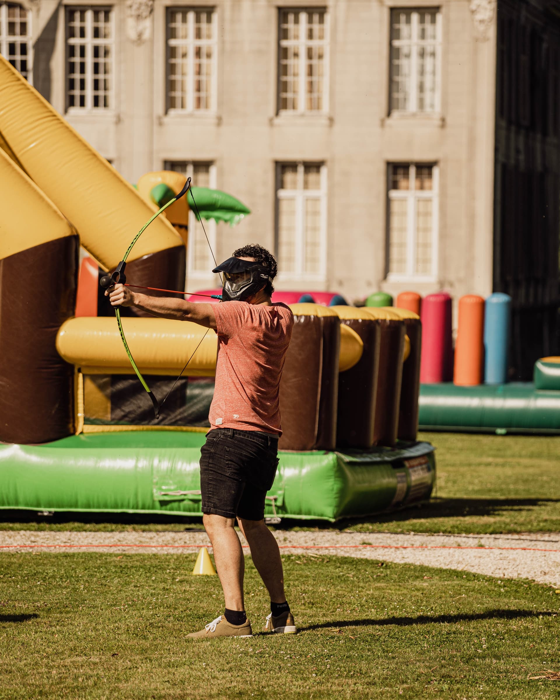 Chaque joueur commence avec un arc et deux flèches, dos à dos en cercle. Après le compte à rebours, vous vous répartissez sur le terrain de jeu et cinq comptes plus tard, le tir peut commencer ! Touchez autant d'adversaires ou d'objets que possible et esquivez les flèches. Vous êtes touché ? Vous êtes alors éliminé et vous devez poser votre arc au milieu. Le dernier guerrier debout gagne la bataille !