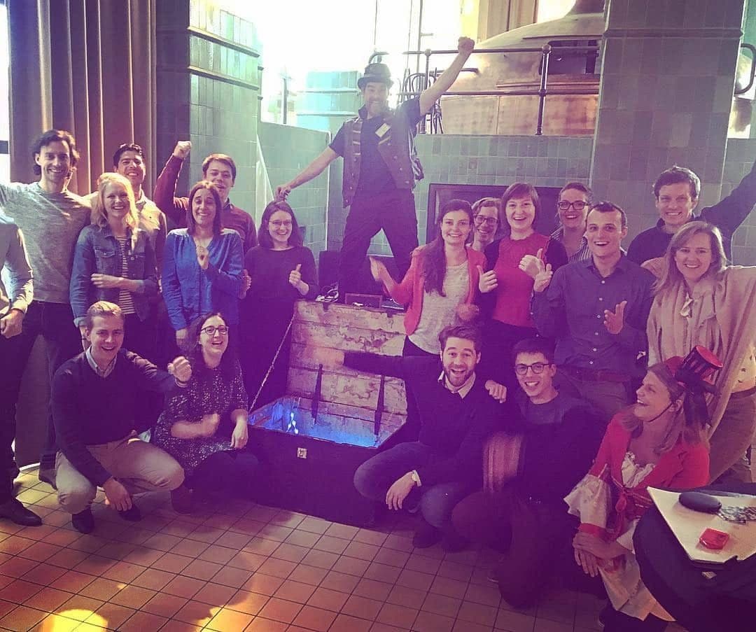 Notre jeu d’évasion est conçu pour des groupes de toutes tailles, petits ou grands. Le groupe est divisé en quatre équipes (ou en multiples de quatre pour les groupes plus grands). Chaque équipe est installée à une table avec un coffre dessus. L’objectif est d’ouvrir le coffre le plus rapidement possible. Une fois le coffre ouvert, de nouvelles énigmes apparaissent. Faites la course contre la montre avec vos coéquipiers et essayez de déverrouiller le coffre au trésor aussi vite que possible!