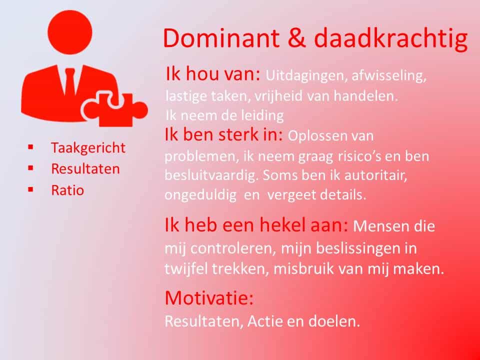 We doen tijdens de DISC workshop doen we een basis DISC test. Deze test bestaat uit stellingen waarop ja/nee beantwoord kan worden en geeft een globaal inzicht van jouw DISC profiel.