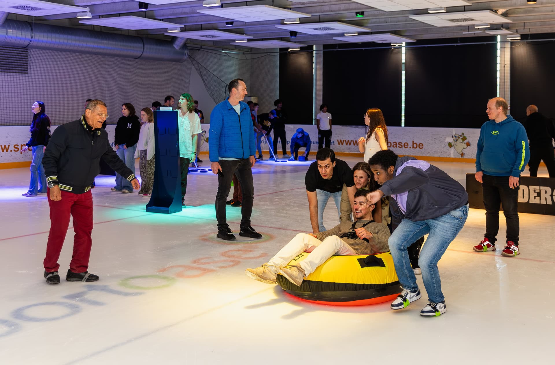 Grotere groepen zijn mogelijk op aanvraag. Dit is afhankelijk van de beschikbaarheid van de grote ijsbaan.