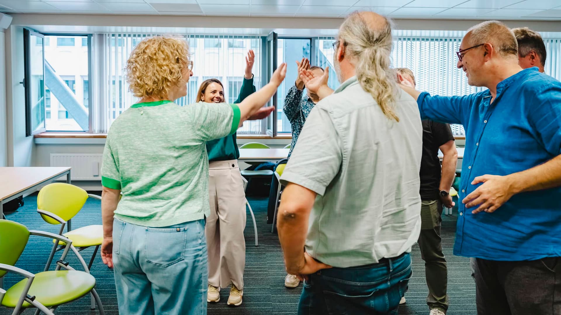 Deze workshop is plezant, toegankelijk en laagdrempelig met simpele oefeningen die iedereen kan. Niemand wordt tot iets verplicht maar uit ervaring blijkt dat iedereen zich vroeg of laat smijt. Alles gebeurt in een gemoedelijke en opbouwende sfeer begeleid door een coach met 30 jaar improvisatie- en 50 jaar levenservaring die zich open en kwetsbaar opstelt. Door op een luchtige manier samenwerken, duidelijk communiceren, positief denken en vertrouwen te stimuleren, sculpteren we samen een team dat een steeds veranderende wereld aankan.