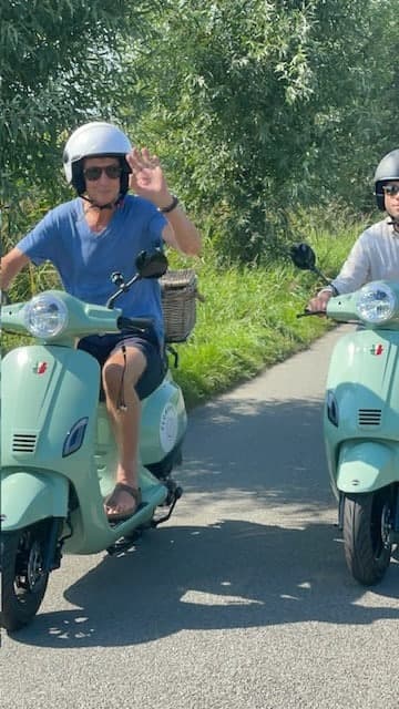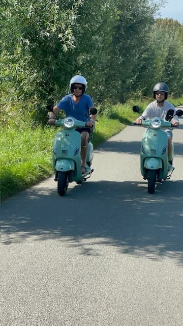 Vervolgens volgt een korte uitleg en kan de rit beginnen. Per scooter is er plaats voor twee personen.