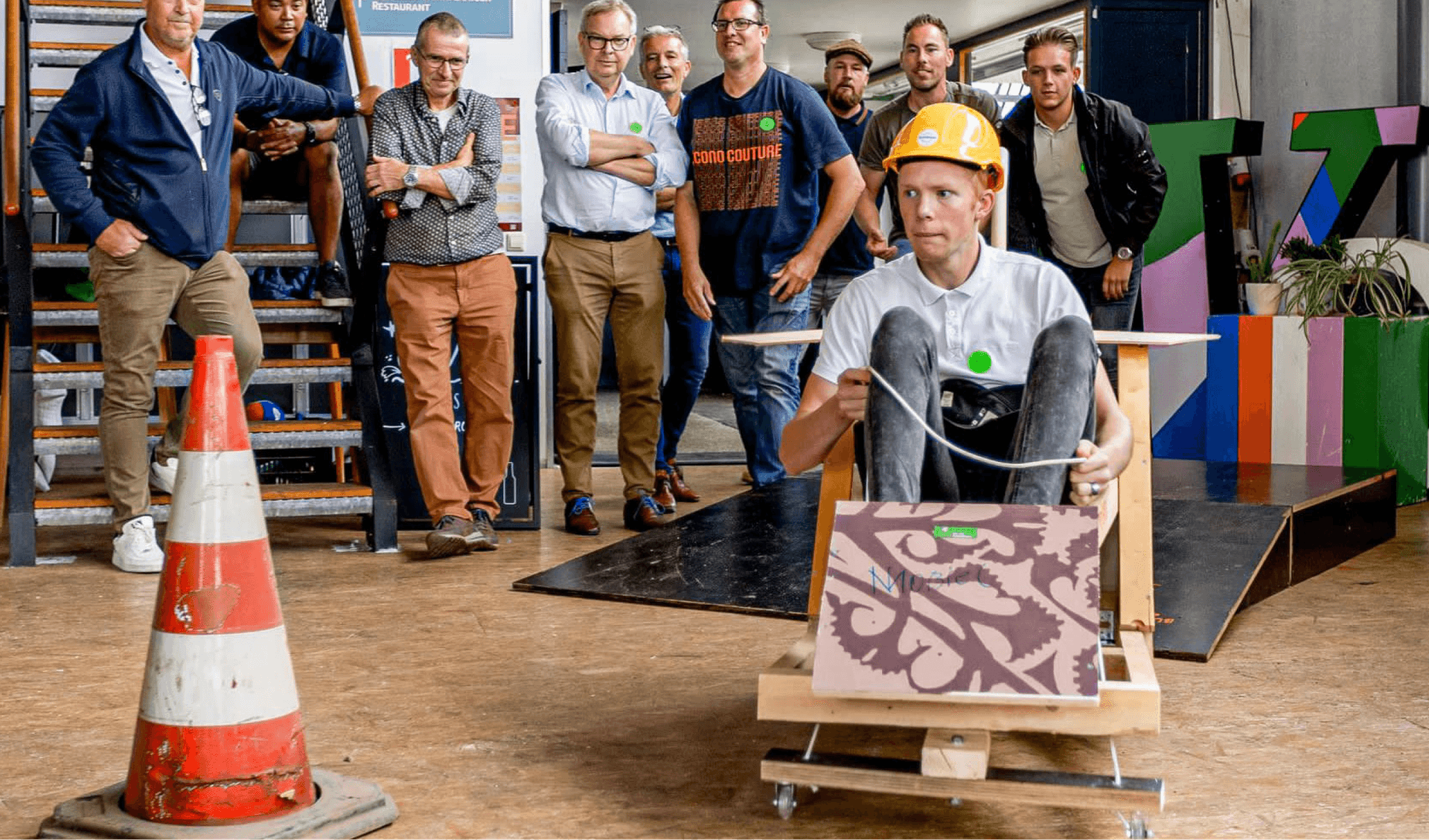 De groep wordt in teams verdeeld, zodat jullie met en tegen elkaar kunnen strijden. Ieder teamlid heeft een specifieke rol en krijgt de beschikking over hout, wielen en gereedschappen. De opdracht is om binnen de gegeven tijd een zeepkist te ontwerpen en te bouwen waar 1 bestuurder in/op kan. Hoe beter je samenwerkt, des te mooier en sneller de zeepkist!