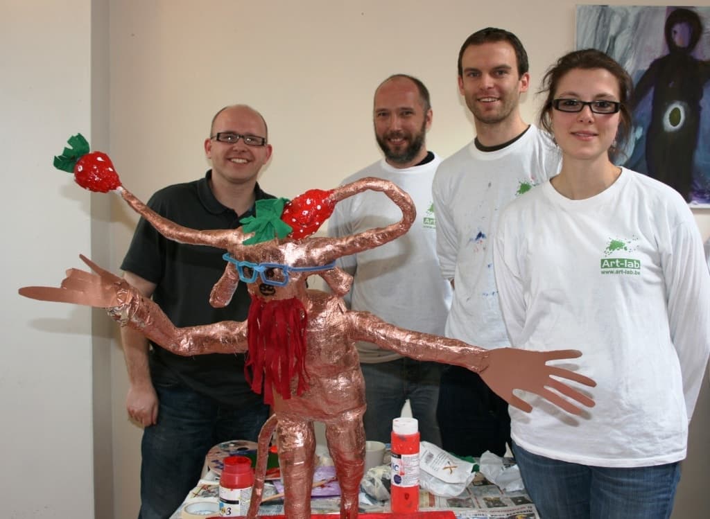 Ruimtelijk werken laat de creativiteit van elke deelnemer de vrije loop. Deze teambuildingformule creëert voor elk team telkens opnieuw een bijzondere dynamiek. De collega’s zijn terecht trots wanneer ze erin slagen om van werkelijk niets een fantastische sculptuur te creëren. Deze workshops modern beeldhouwen worden door een professionele kunstenaar begeleid en resulteren telkens opnieuw in prachtige werken én stralende collega’s.