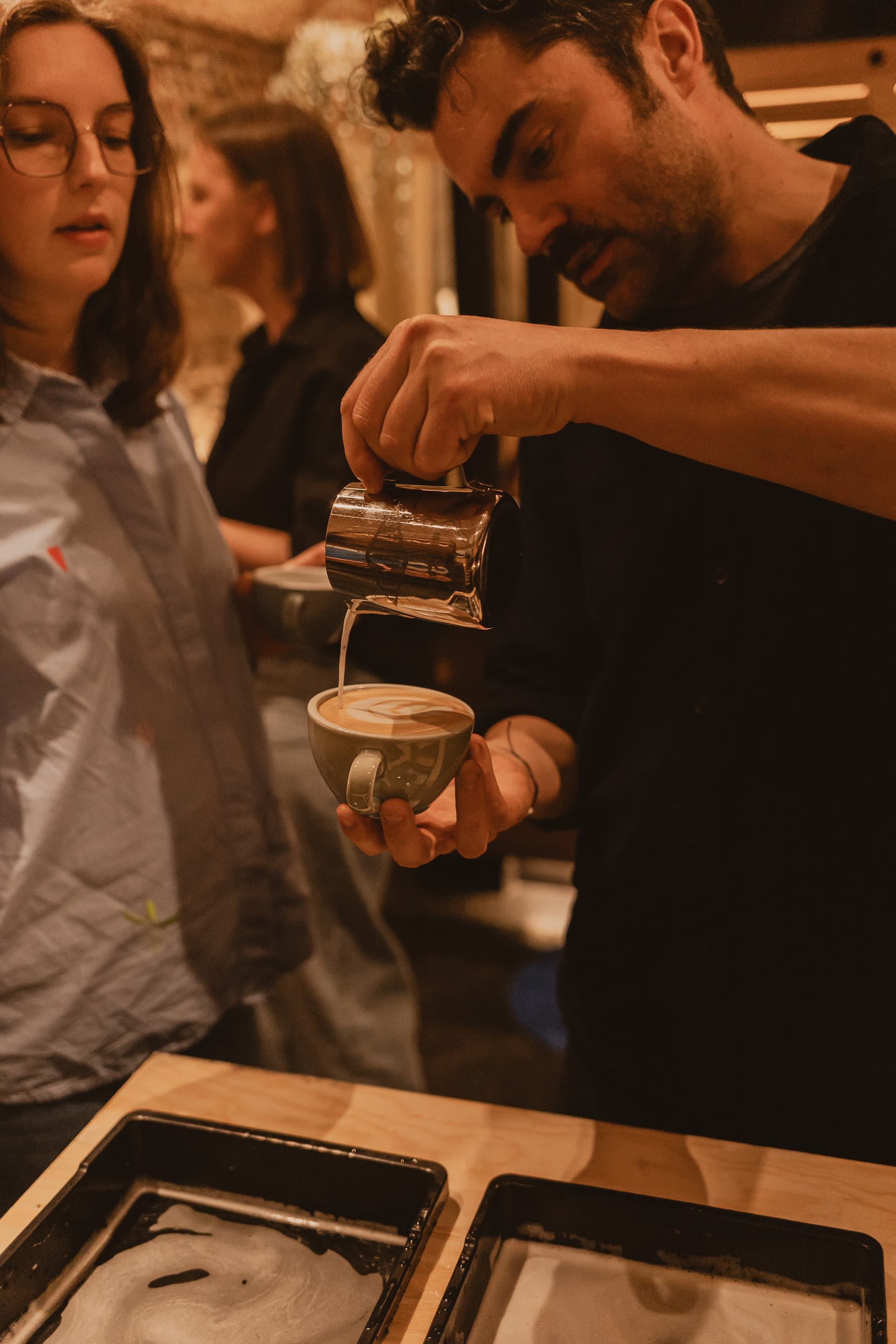 Het is een praktische workshop met véél oefening waarbij we gebruik maken van duurzaam oefenmateriaal: vervangmelk en soja-saus. De koffies die jullie drinken, zijn uiteraard met kwalitatieve koffie.