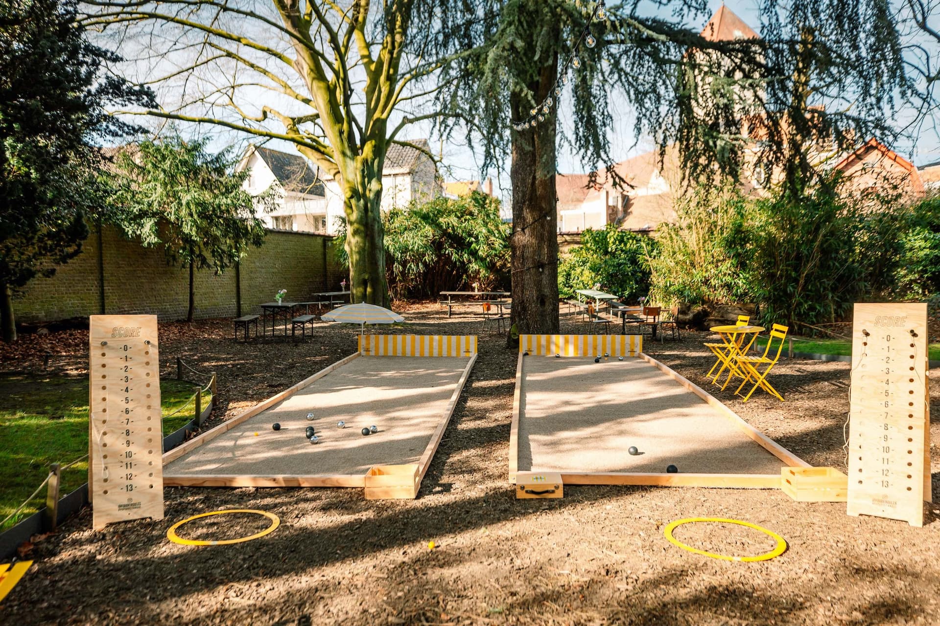 Geen vrachtwagens vol grind of zand, maar stijlvolle kunstgrasmatten, houten kaders en sfeervolle decoratie. Onze speelklaar afgewerkte setups combineren nostalgie en verwondering, met oog voor detail.