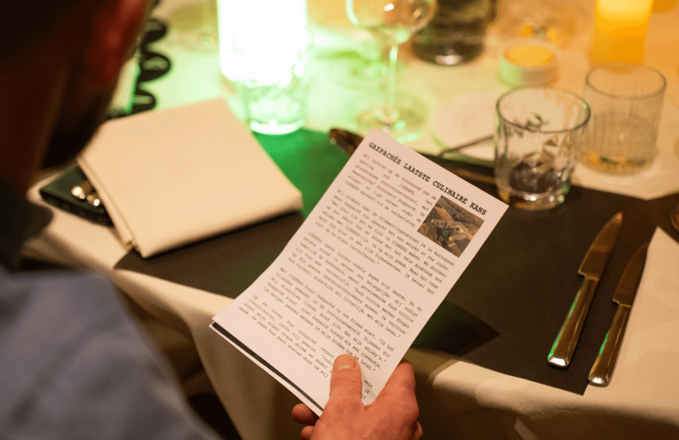Chef Francesco Caspaché is de enfant terrible van de gastronomische wereld. Vanavond heeft hij alle chefs uit de omgeving uitgenodigd naar zijn nieuwe avant-garde restaurant ICEBRG. Stap in een wereld vol mysterie terwijl je geniet van een heerlijk diner. Dit interactieve spel, begeleid door acteurs die de ervaring tot leven brengen, daagt je uit om samen met je team een geheim te ontrafelen.